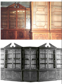 a Chippendale style breakfront bookcase circa 1860”.
