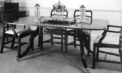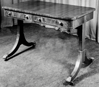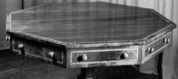the right an octagonal Drum Table and a Satinwood Sofa Table |